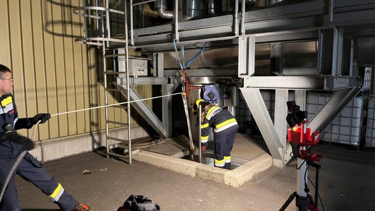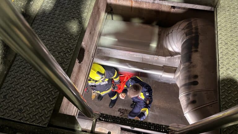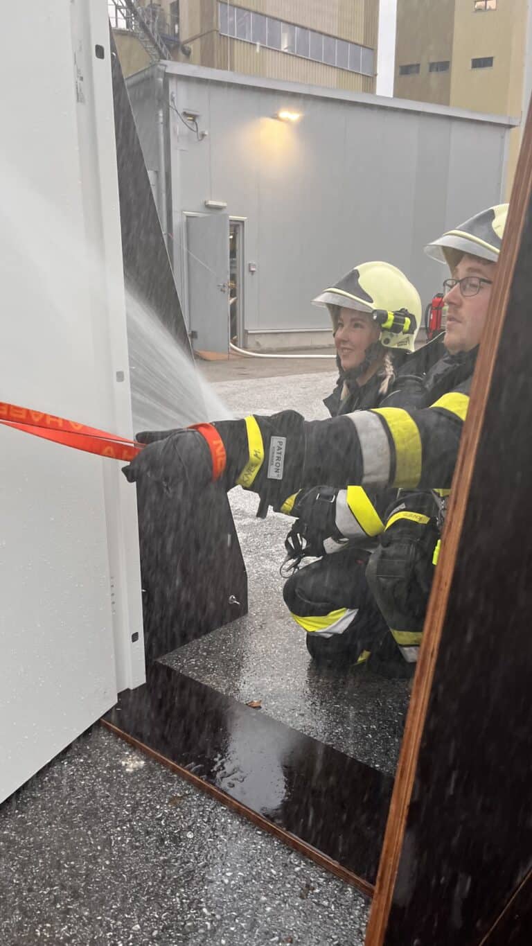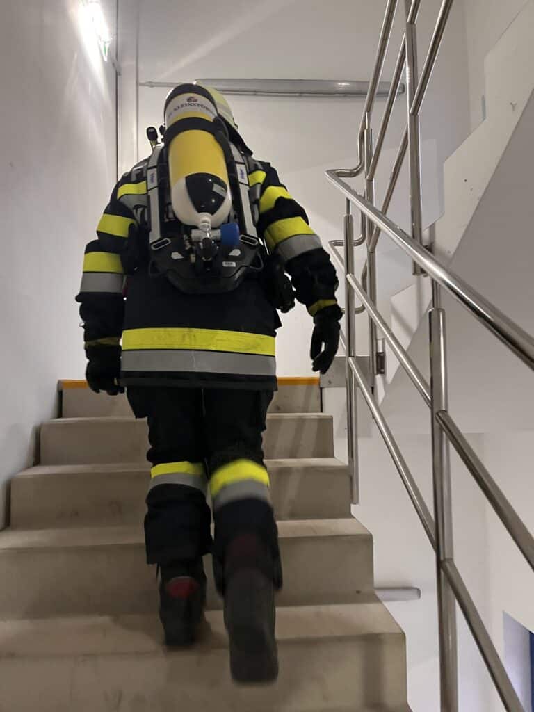 Im Bereich Atemschutz lag der Fokus auf der Brandbekämpfung im Innenangriff. Die Trupps mussten dabei realistische Einsatzbedingungen meistern – unter anderem das Vorgehen in einem 27 Meter hohen Gebäudeteil sowie eine anspruchsvolle Geschicklichkeitsübung zur Verbesserung von Teamarbeit und Belastungssteuerung.