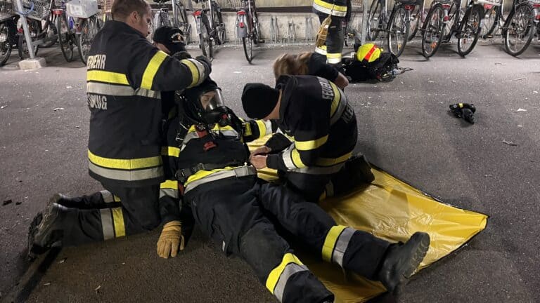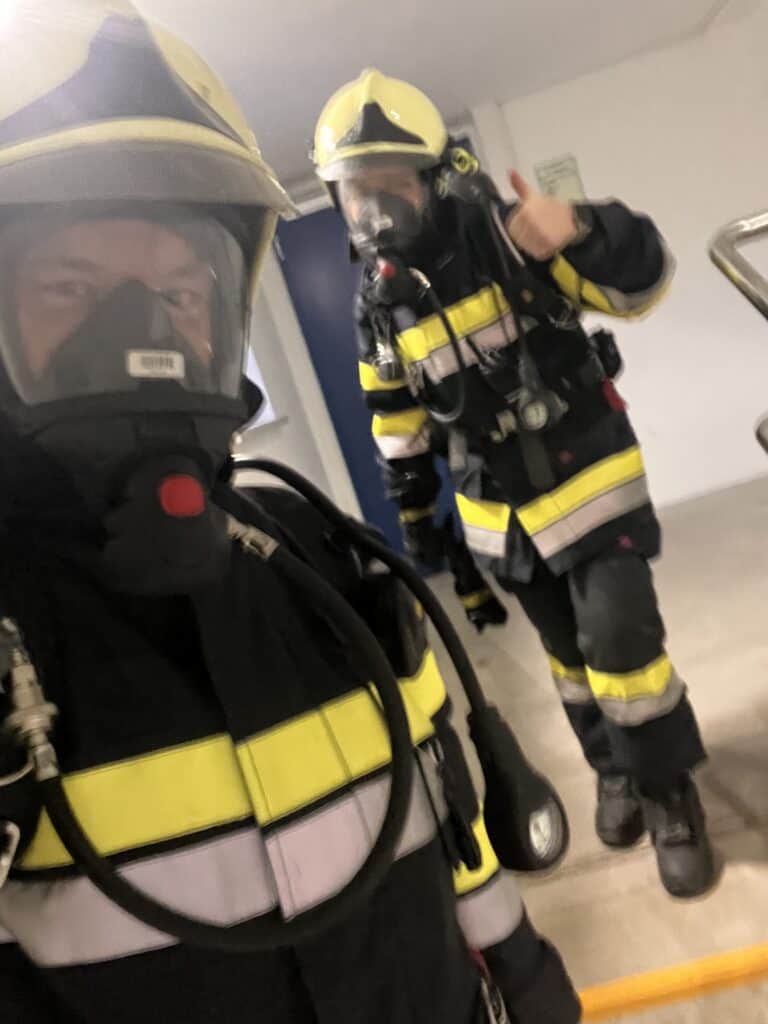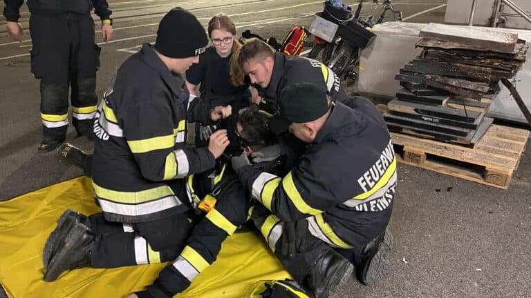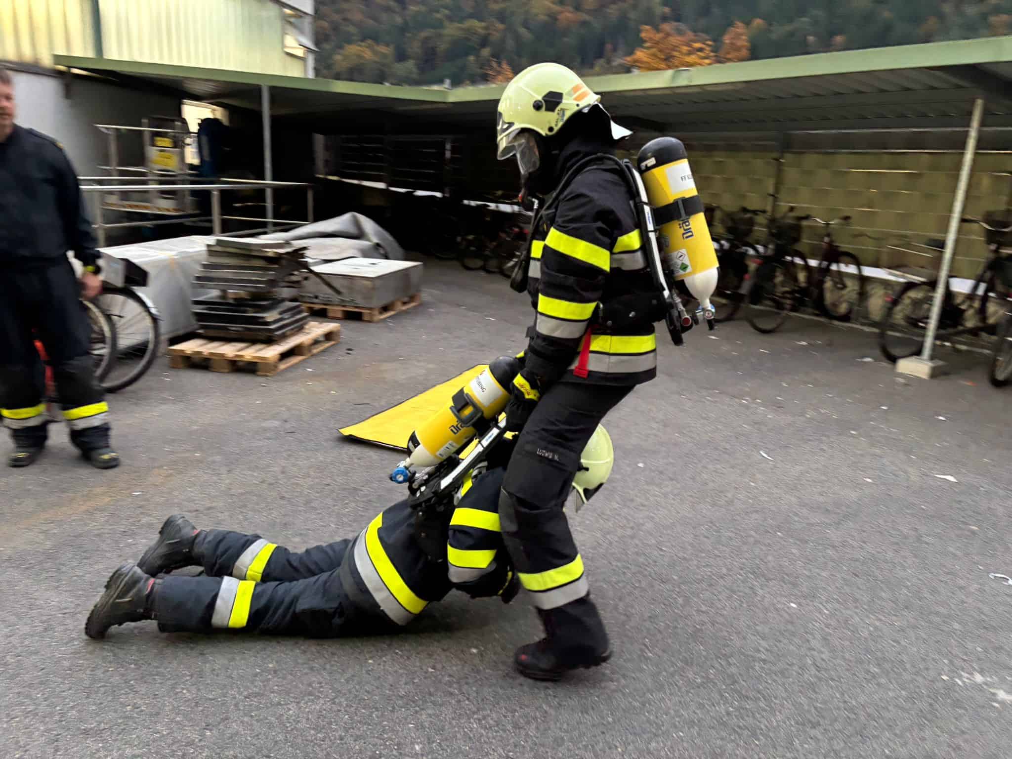 Ein weiterer Schwerpunkt war der richtige Umgang mit Notfällen, beispielsweise wenn ein Atemschutzgeräteträger das Bewusstsein verliert. Dabei wurde das koordinierte Handeln im Trupp unter Stressbedingungen geübt.