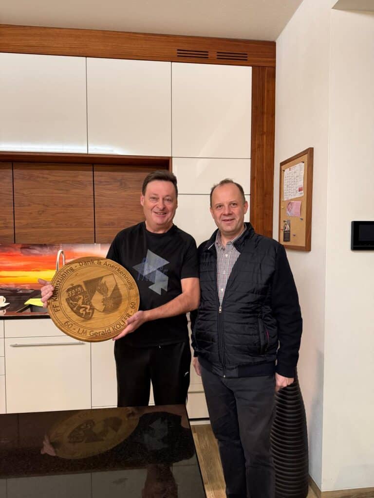 Über 37 Jahre Feuerwehrmitglied, davon über 32 Jahre als Feuerwehrkassier zeichnen unseren Meistertischler Gerald Koller – Chef der Tischlerei Koller in Kleinstübing – aus.