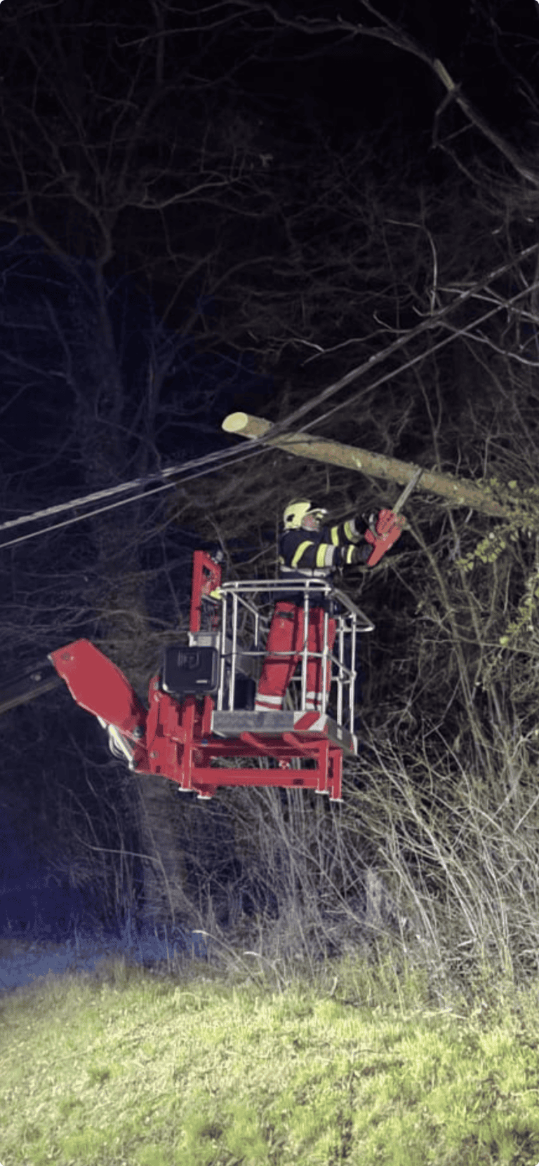 Nach dem Eintreffen der ersten Einsatzkräfte wurde umgehend die Einsatzstelle abgesichert und eine Lageerkundung durchgeführt. In weiterer Folge wurde unter Beachtung der erforderlichen Sicherheitsabstände zur beschädigten Stromleitung, in enger Abstimmung mit den zuständigen Stellen, mit den Sicherungs- und Freischneidearbeiten begonnen.