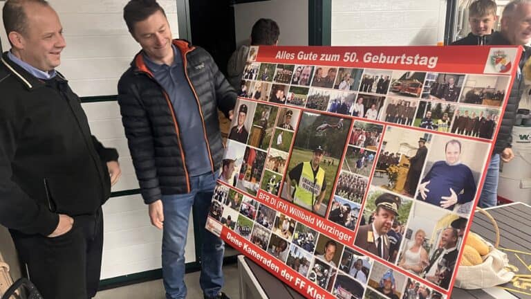 Im Rahmen der Feierlichkeiten wurde unserem Kommandanten auch ein Geschenk überreicht – als kleines Zeichen der Wertschätzung für seinen unermüdlichen Einsatz, seine Führungsstärke und sein großes Engagement für die Feuerwehr Kleinstübing.